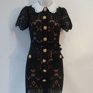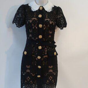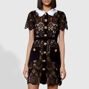 Womens Self-Portrait Black White Guipure Lace Sheath Cindy Mini Dress 6