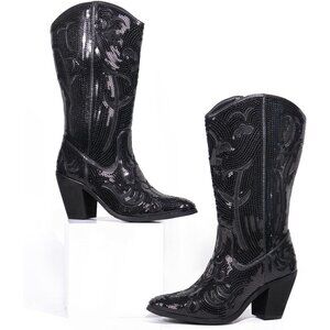 Women's Sequin Black Fashion Western Zipper Pointed Toe Embroidered Boots