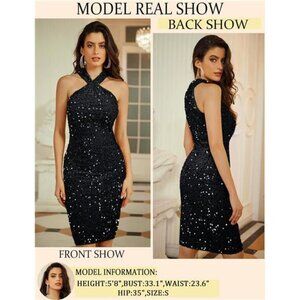 FEATURES:Sequin dress,sequin dress,halter bodycon dress, midi party club sequin dress, sparkly sleeveless cocktail dress for women, glitter halter dresses, above the knee,sparkling sequin dresses, elegant sleeveless pencil dresses, stylish halter neck dresses, sexy party dresses, glamorous club party dresses