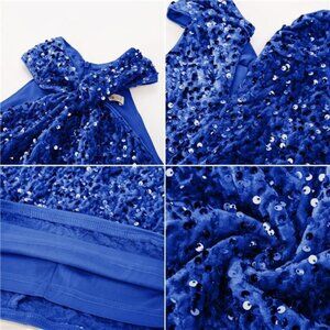 Womens Sequin Dress Sleeveless Sparkly Glitter Halter Blue