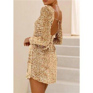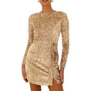FEATURES: Fall Winter Bodycon Dress, Sexy Sequin Dress, Elasticity Warm Fabric, Long Sleeve, Crew Neck, Mini Length, Slim Fit, Glitter Details, Sexy V-Shape Backless, Tie at Back, Invisible Zipper at Back, Slit Hem.