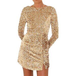 Women's Sequin Dress Velvet Warm Long Sleeve Champagne