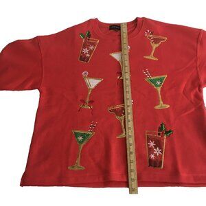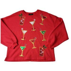Women's Sequin Graphic Sparkle Sweatshirt Christmas Holiday Drinks Party Small