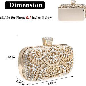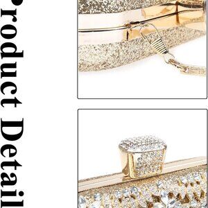 Features: Elegant evening handbag featuring a sparkling sequin and rhinestone design for a luxurious look. Comes with a metal frame and a removable chain, giving you versatile styling options—use it as a clutch, shoulder bag, or cross-body. Spacious enough to hold your makeup essentials, phone, wallet, and more, keeping everything chic and organized.