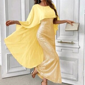 Women's Sequin Shawl Elegant Formal Gown Evening Dress, Semi Formal Prom Dress