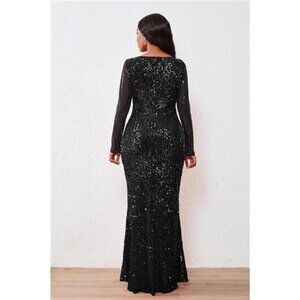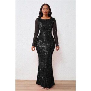 Women's Sequins Round Neck Long Sleeve Maxi Dress Black
