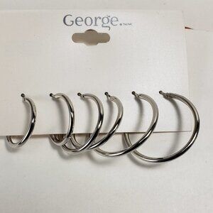 Women's Set of 3 pairs of Polished Silver tone Multiple sizes Hoop Earrings
