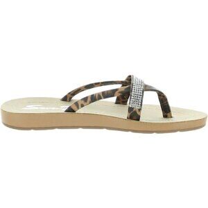 Women's Seven7, Thong Sandals, Cheetah Print, Tan Soles, Size 8 with rhinestones.