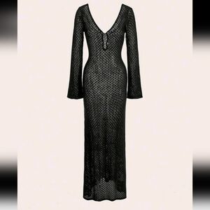 Women's Sexy Black Chest Hollow Knitted See-Through Long Cover Up Dress