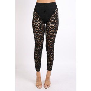 Women's Sexy Black Laser Cut Leggings Comfy Lightweight Quick Dry Silky