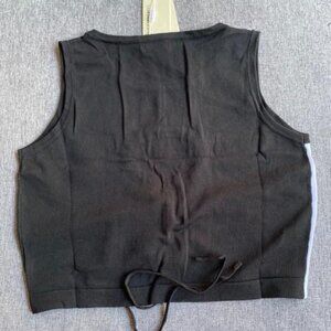 Women's Sexy Cutout Drawstring Crew Neck Tank Top, Black/White XXL