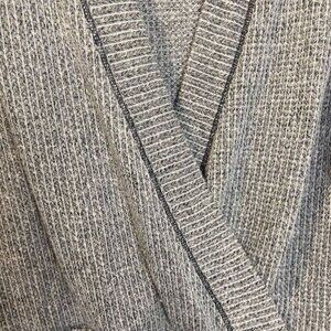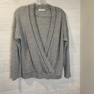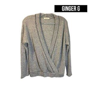 Enhance your wardrobe with this alluring deep V cross neck sweater. The faux wrap design and long sleeves offer a chic, modern look perfect for any occasion.