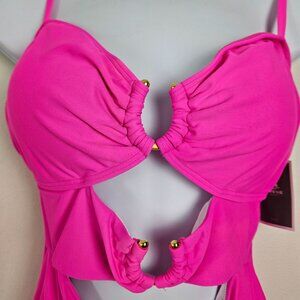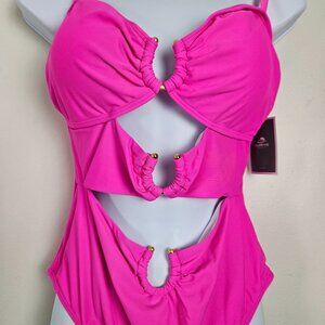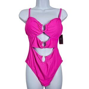 Womens Sexy Large Hot Pink One Piece Swimsuit Ring Linked Cutouts Beach Vacation