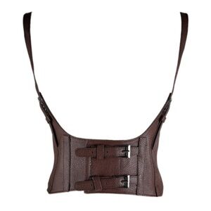 Womens Sexy Steampunk Vegan Brown Leather Bustier Underbust Waist Belt Corset