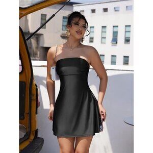 Women's Sexy Tube Strapless A Line Mini Dress Black