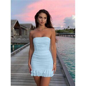 Women's Sexy Tube Top Bodycon Mini Dress Blue