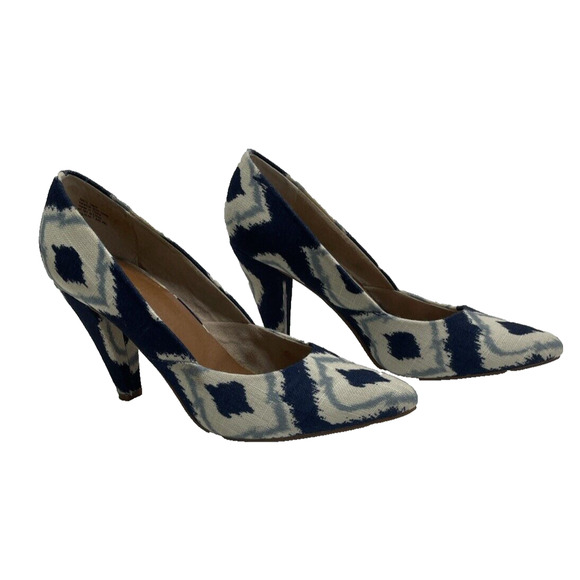Women’s Seychelles Fabric Heels SIZE 9 Anthropologie Aztec Blue Shoes Pumps