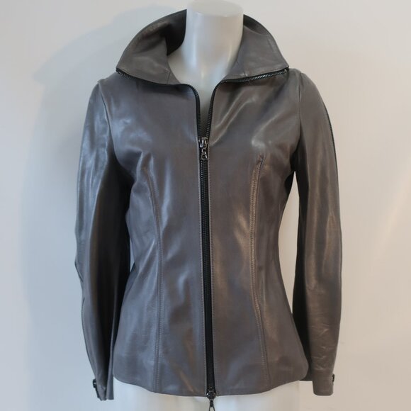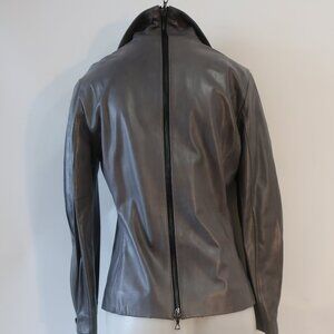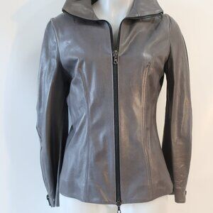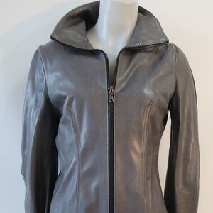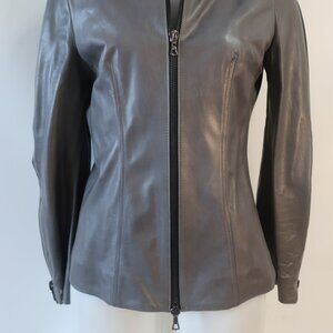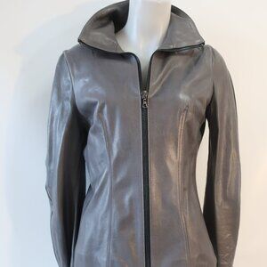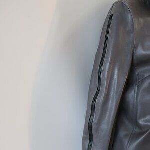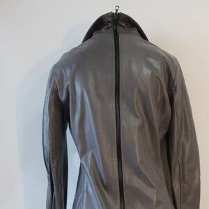 Womens Shari's Place Gray Black Zipper Motif Leather Jacket 8