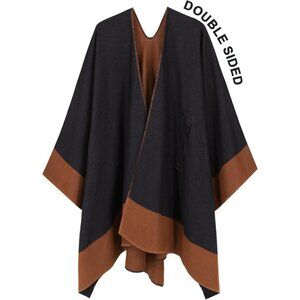 Women's Shawl Wrap Poncho Ruana Cape Open Front Cardigan Fall Winter Camel