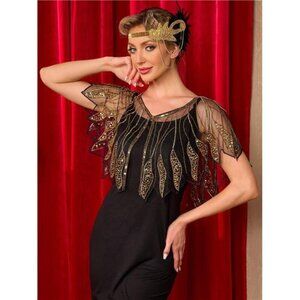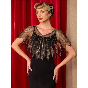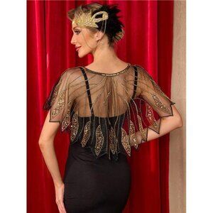 Women's Shawl Wraps, Sequin Beaded Flapper Gold x Black