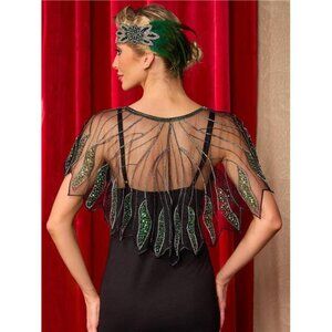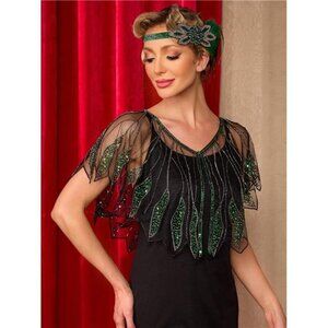 Women's Shawl Wraps, Sequin Beaded Flapper Green x Black