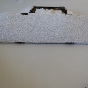 Womens Shay Todd White Brown Gold Studded Terry Cloth Tote Shoulder Handbag *