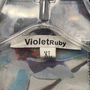 Womens Sheer Collered Button Down Long Floral Print Blouse Size XL