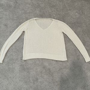 Women's Sheer Cream Long-Sleeve Sweater Top One-Size