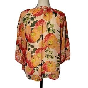 Womens Sheer Floral 3/4 Sleeve Top Sz S Oversized Boho Bloomcore Spring Peasant