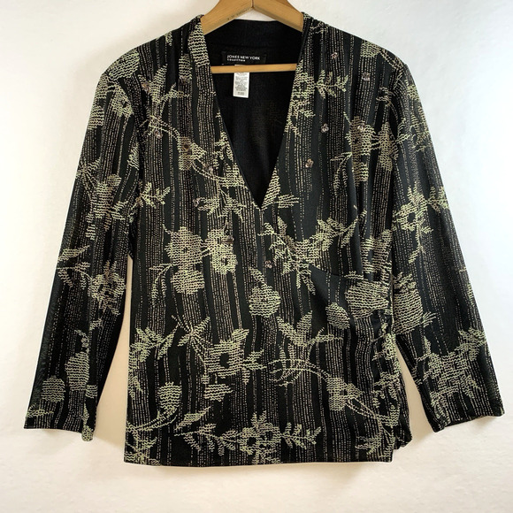 Womens Sheer Mesh Faux Wrap Top Sz L Floral Y2K Evening Office Siren Sequin USA