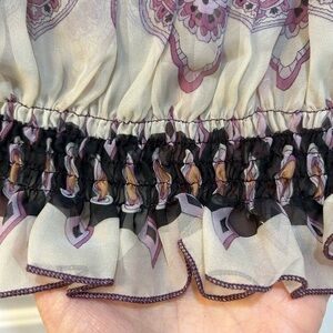 Women's Sheer Silk Blouse Cape Sleeve Medallion Paisley Print Sz M (DESIGNER???)