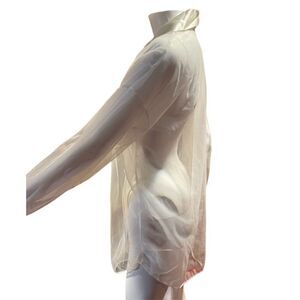 Womens Sheer White Silk Like Blouse SZ Large L