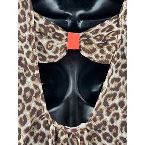 Women's Sheer overlay Tank, Leopard Print, Coral Accented Bow, Medium