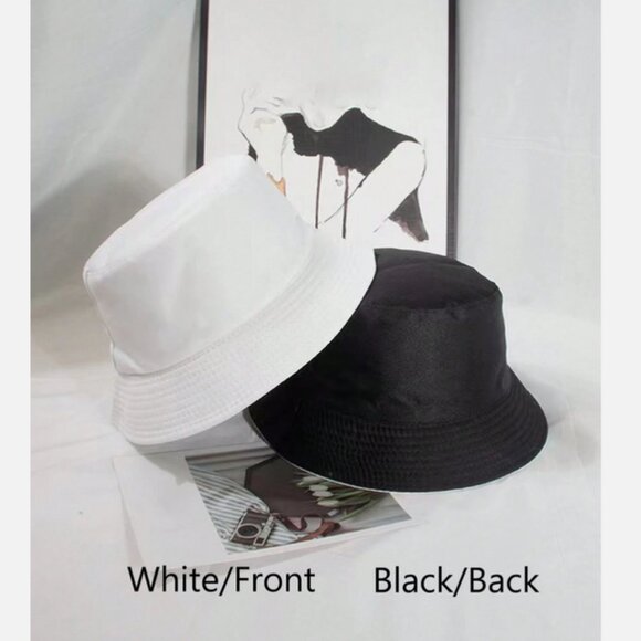 Womens Shein Black White Reversible Bucket Hat (Single Hat) Cap 90s Summer Beach