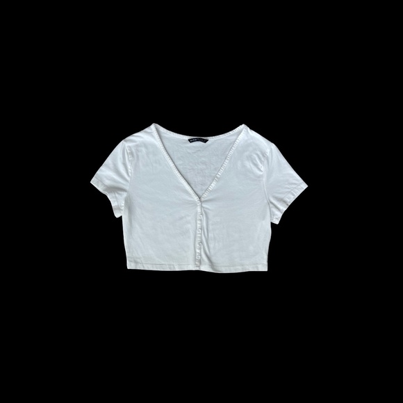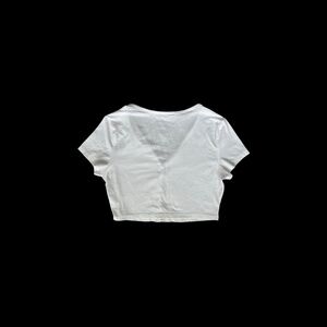 Women's Shein Button Front Crop Top-Short Sleeve-White-Size L