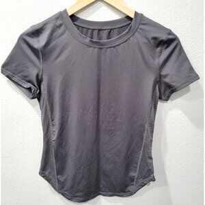 Womens Shein Gray Short Sleeve Athletic Top with Side Mesh Panels Size S
