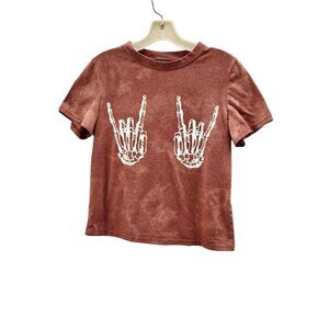 Women's Shein Skeleton Rock n Roll Hand Sign Custom Bleach Dye Crop T-shirt Size