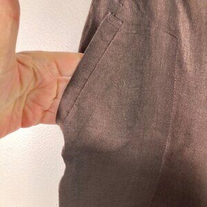 Womens Shirin Guild Wide Straight Leg Linen Pants Stretch Waist Pockets S Brown