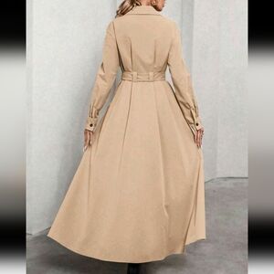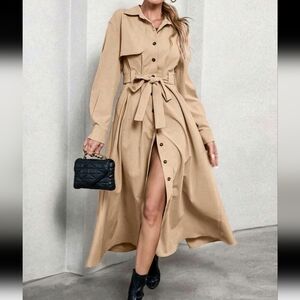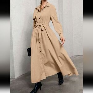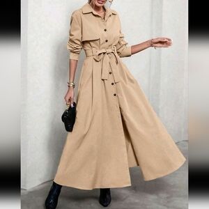 Women's Shirt Collar Cinched Waist Maxi Windbreaker Dress