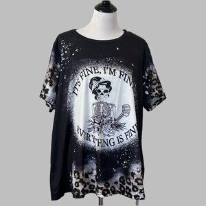 Womens Shirt Plus Size 4XL Black Short Sleeve "Its Fine Everythings Fine" Animal