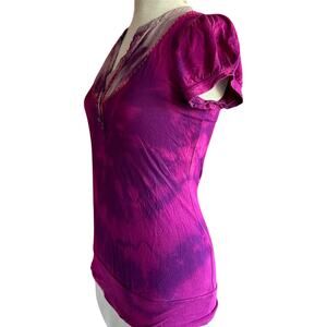 6 Degrees Upcycled Tie Dye Purple Button Neckline Shirt