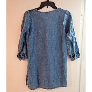 Women's Shoe Sock Denim Embroidered V Neck Shirt Or Dress Size Small