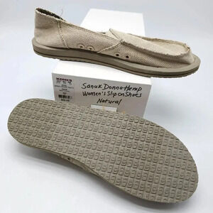 Sanuk DONNA HEMP women's shoes in size 10 offer casual style and comfort. The beige sidewalk surfers loafers, made from hemp, are perfect for everyday wear.