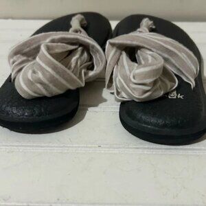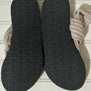 Women’s Shoes Tan White Stripes Yoga Mat Sling Sandals