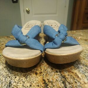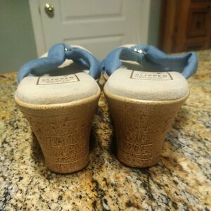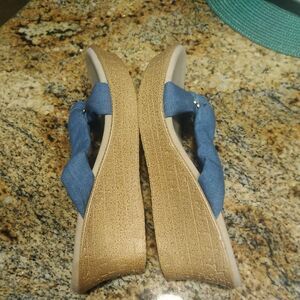 Women's Shoes US 11 Island Slipper Suade Thong Wedge Sandals Blue Fabric Slide Ring. 2" wedge.