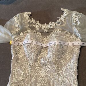 Size XS approximately. This was very tight on my dress form, the lay flat measurements are the best to go by. Please check your measurements to make sure this will fit.