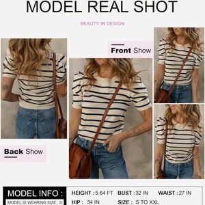 Features: Cute and comfortable crewneck knit top with a stylish stripe pattern and short puff sleeves. Slim fit with ribbed cuffs, lightweight, perfect for staying on trend and cool during warm days.