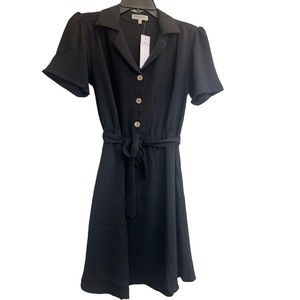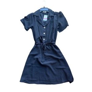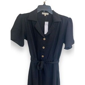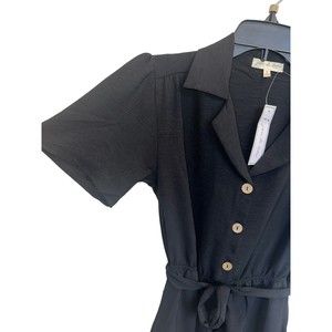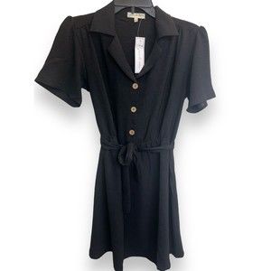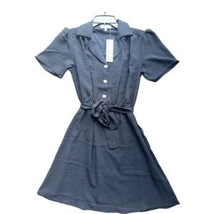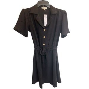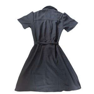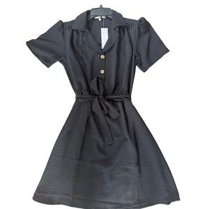 Womens Short Sleeve Button Dress Small Belted Black Pinup Goth Dark Academia