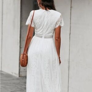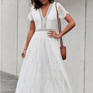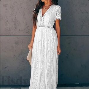 Women's V Neck Short Sleeve Floral Lace Wedding Dress Bridesmaid Cocktail Party Maxi Dress