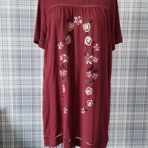 Romwe Women's Short Sleeve Loose Casual Tunic Swing T-Shirt Dress Floral Patch Burgundy XL
